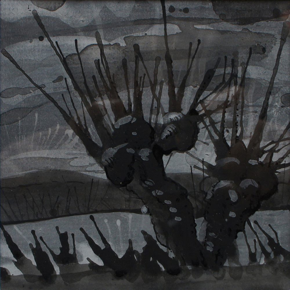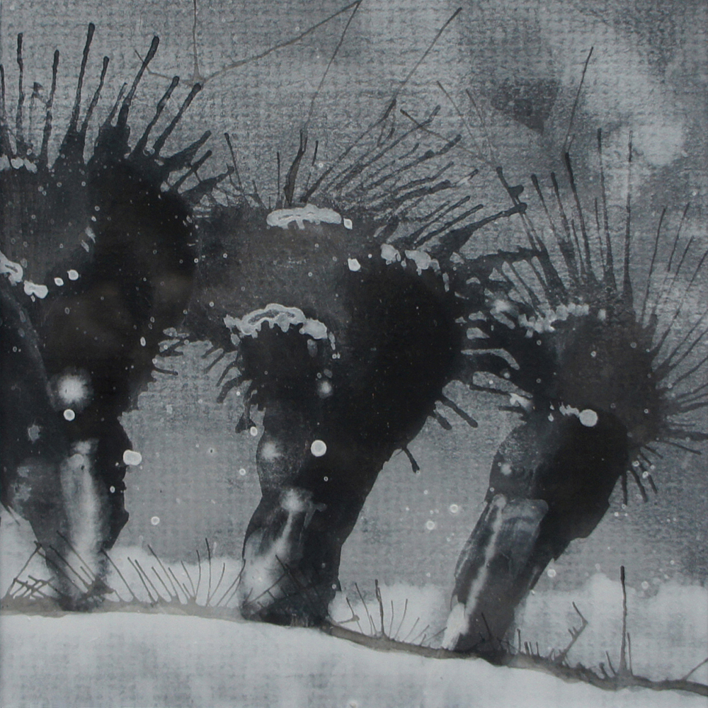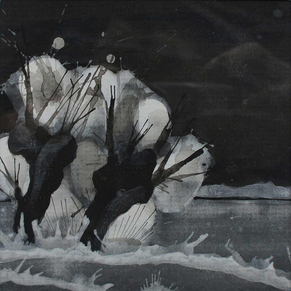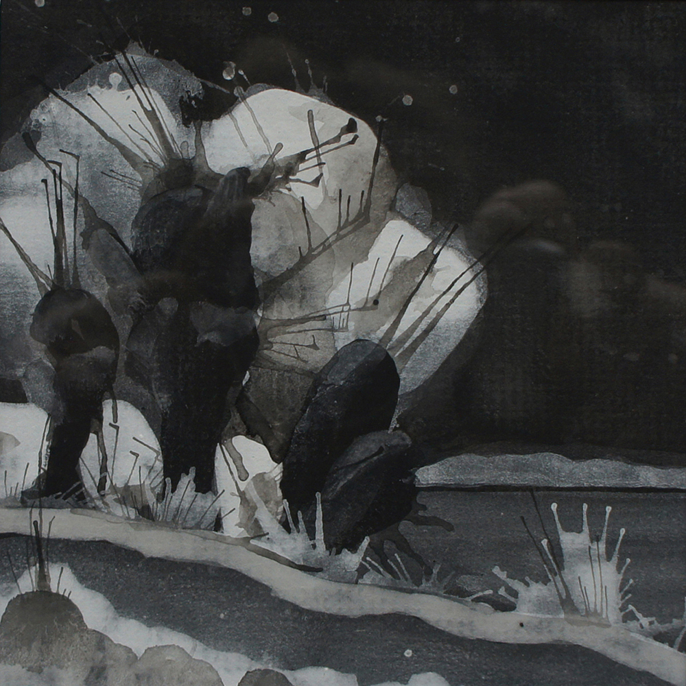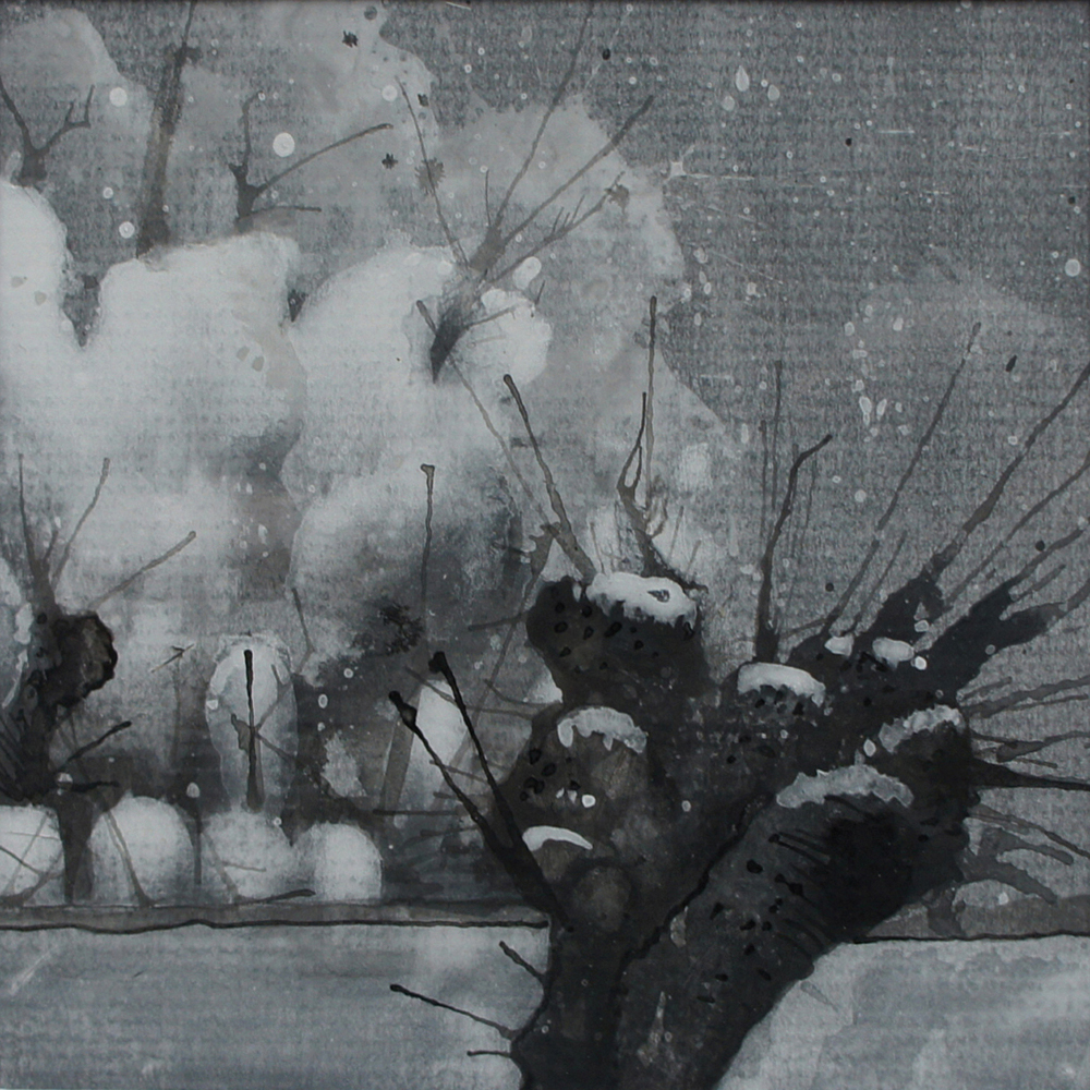 Acryl-Grisaille (Grautonmalerei), Miniatur auf Passepartoutkarton,
