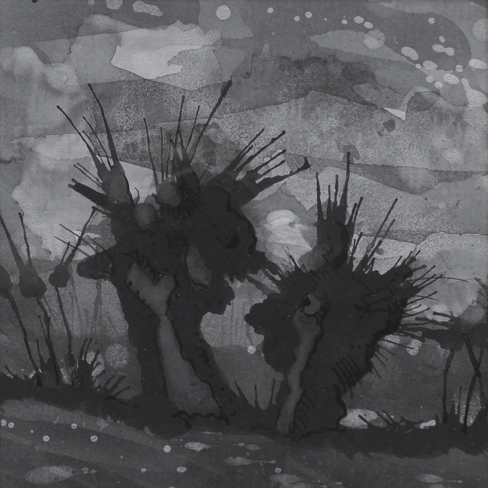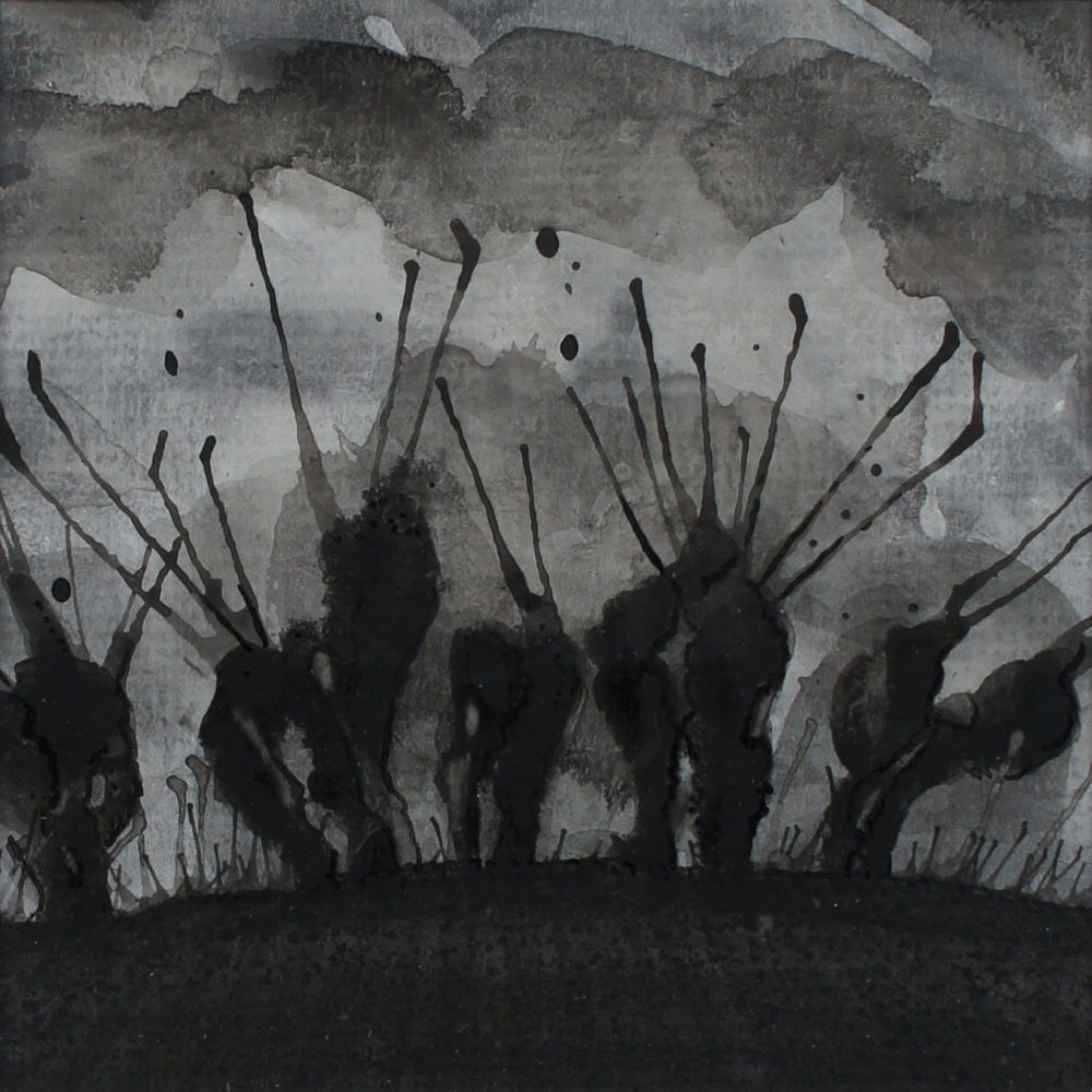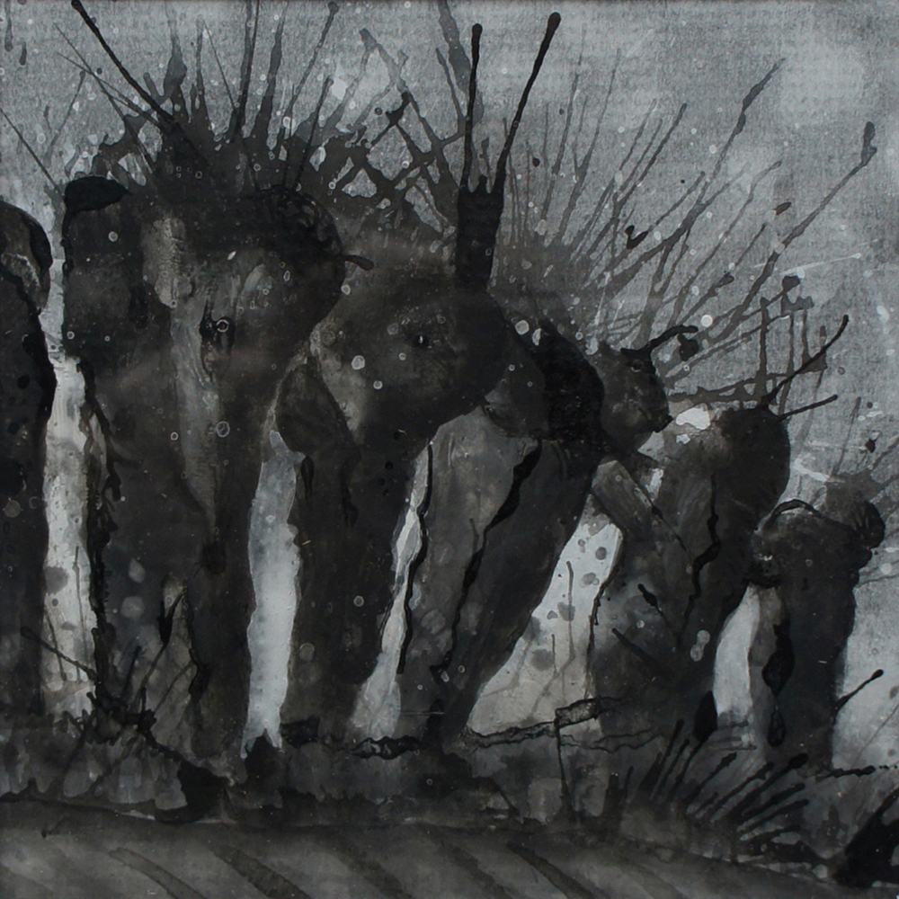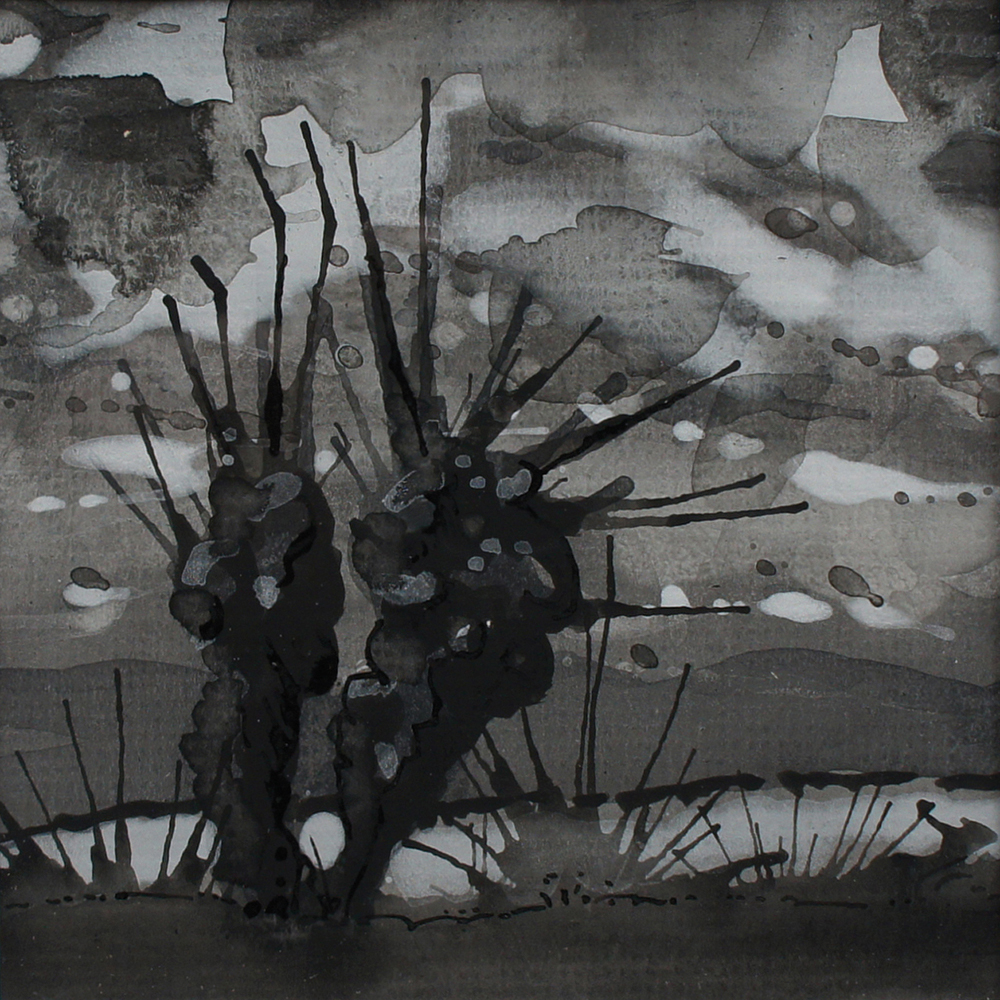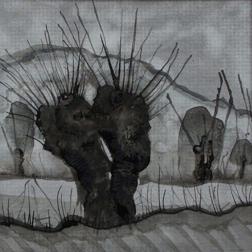 Acryl-Grisaille (Grautonmalerei), Miniatur auf Passepartoutkarton,