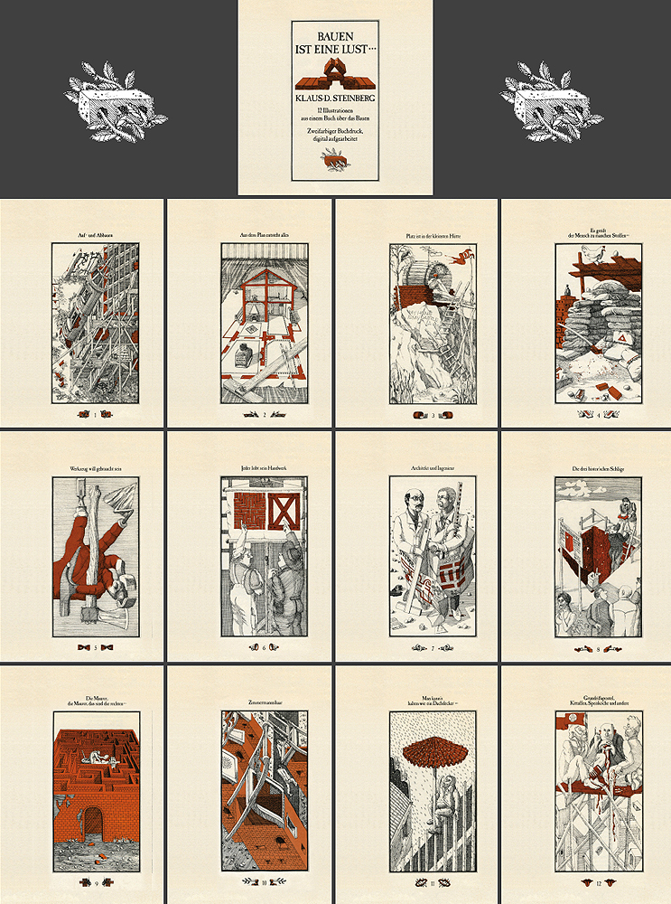 Bauen ist eine Lust, Schutzumschlag, Illustrationen, micronorm-Füller, Tusche, 1986