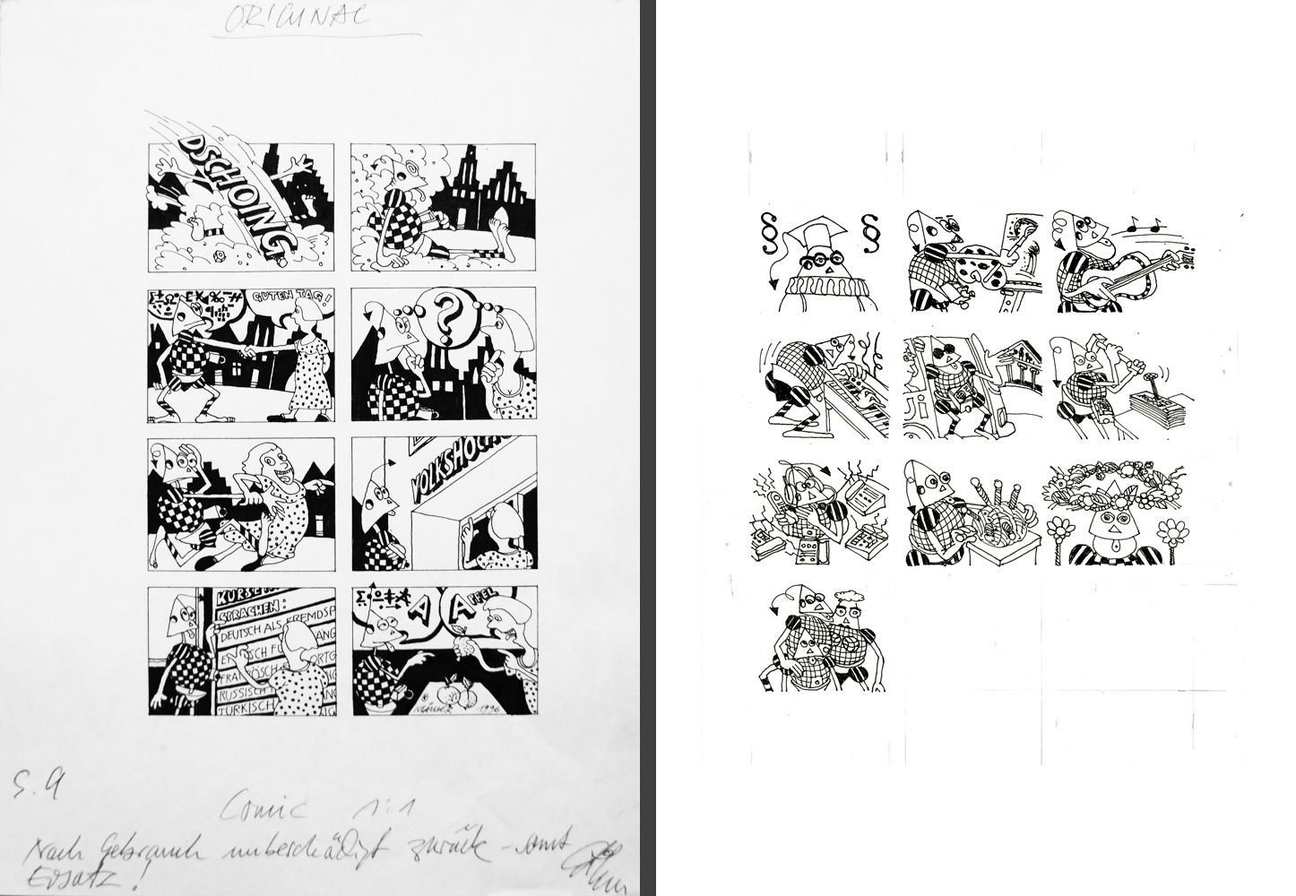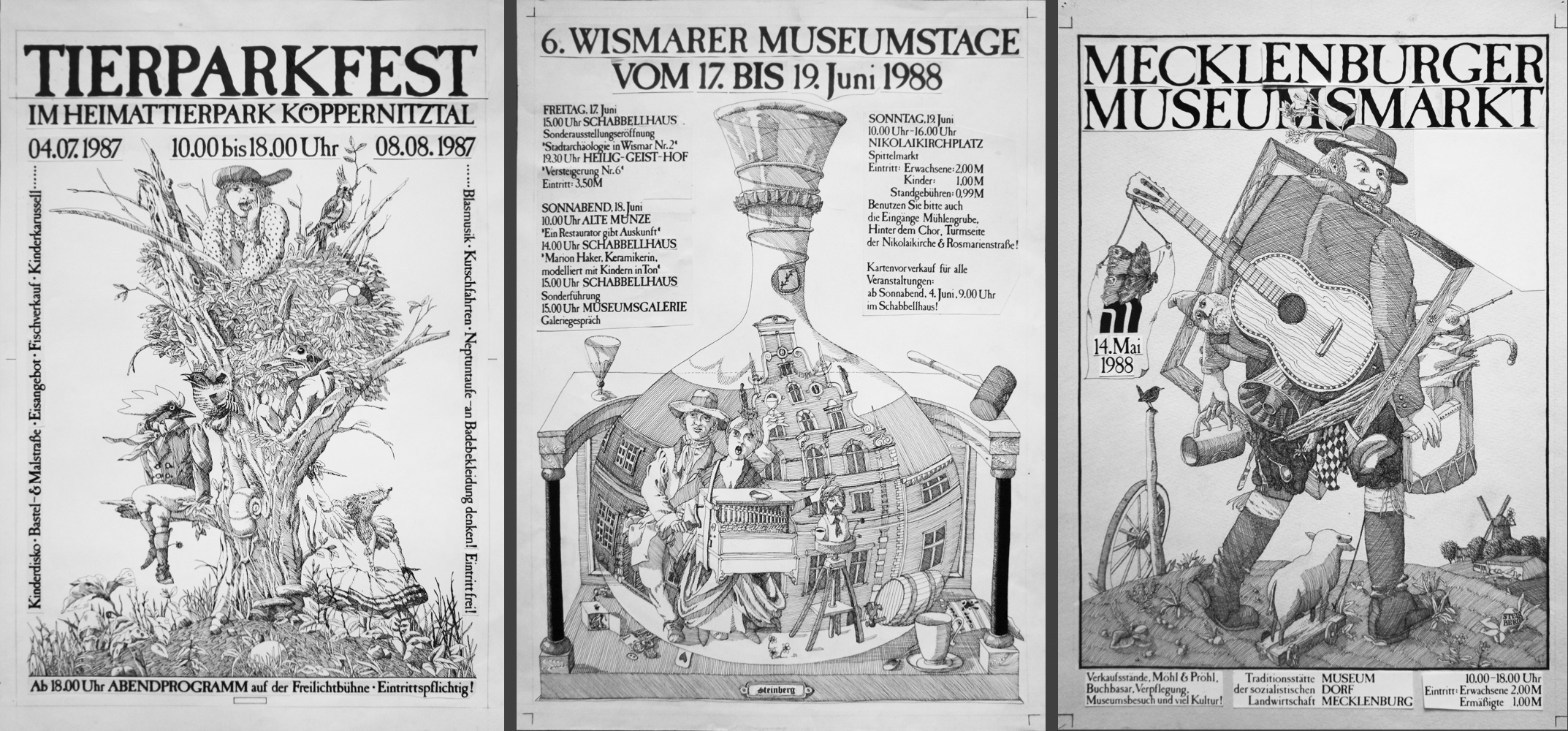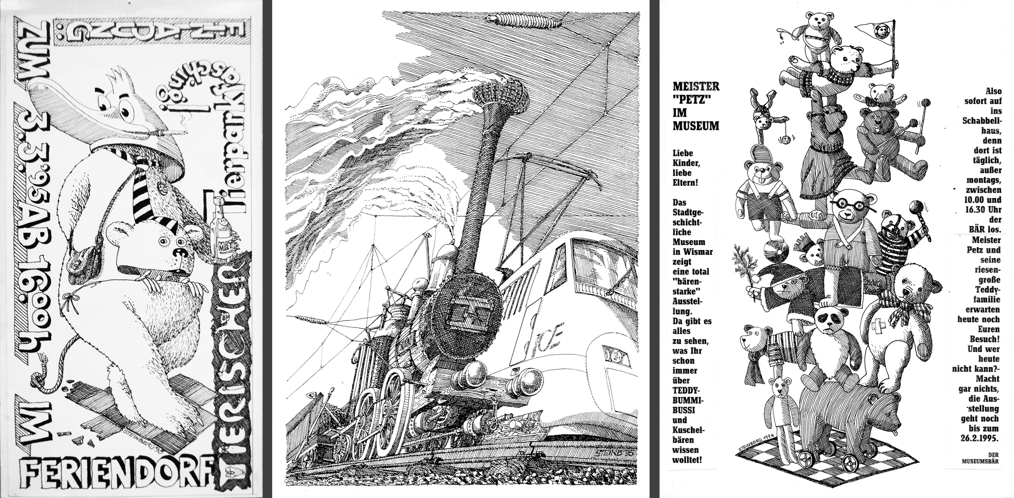 Illustrationen für verschiedene Drucksachen, micronorm-Füller, Tusche, 1987