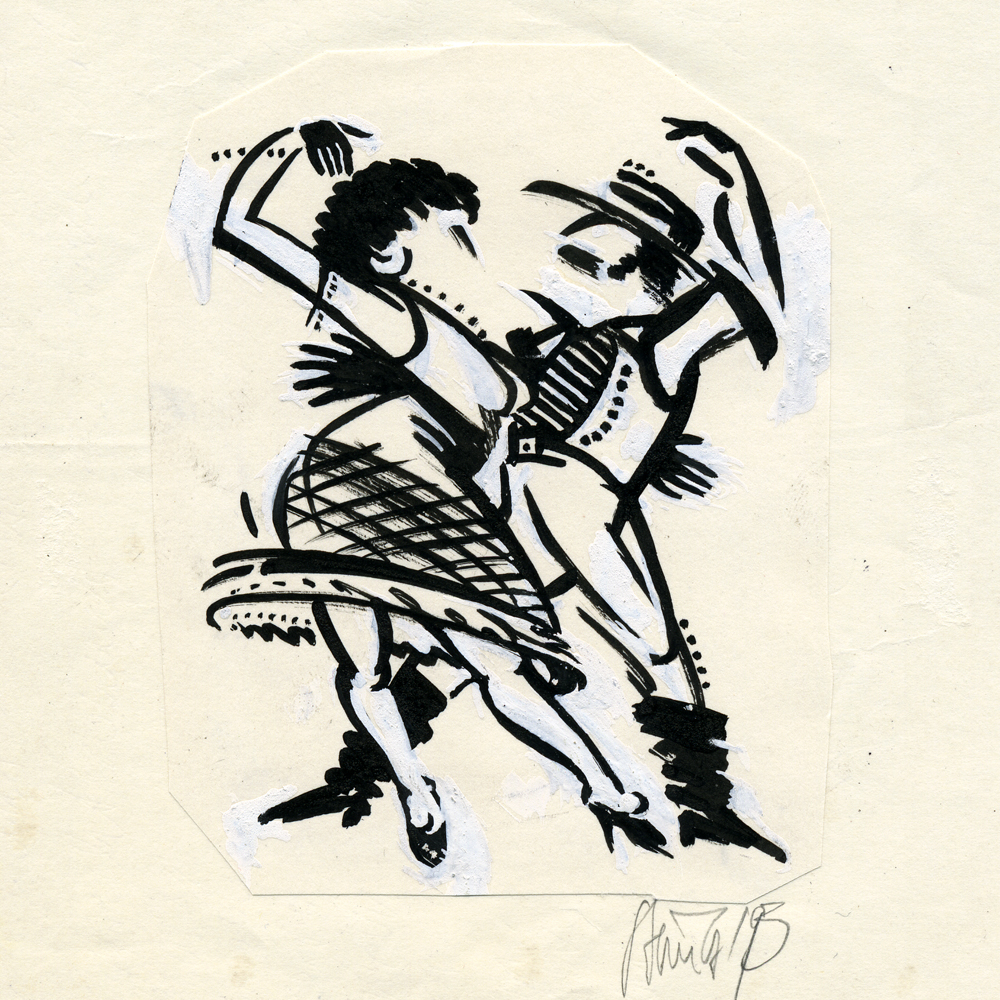 Tanzpaar, für internationales Tanzfestival, Pinsel, Tusche mit Ausbesserungsdeckern, 1993