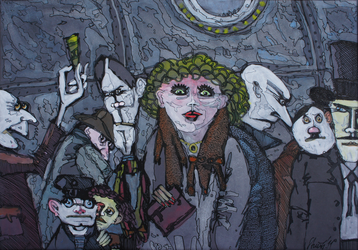 Illustration für Kunstaktion, Fineliner, aquarelliert, 2011