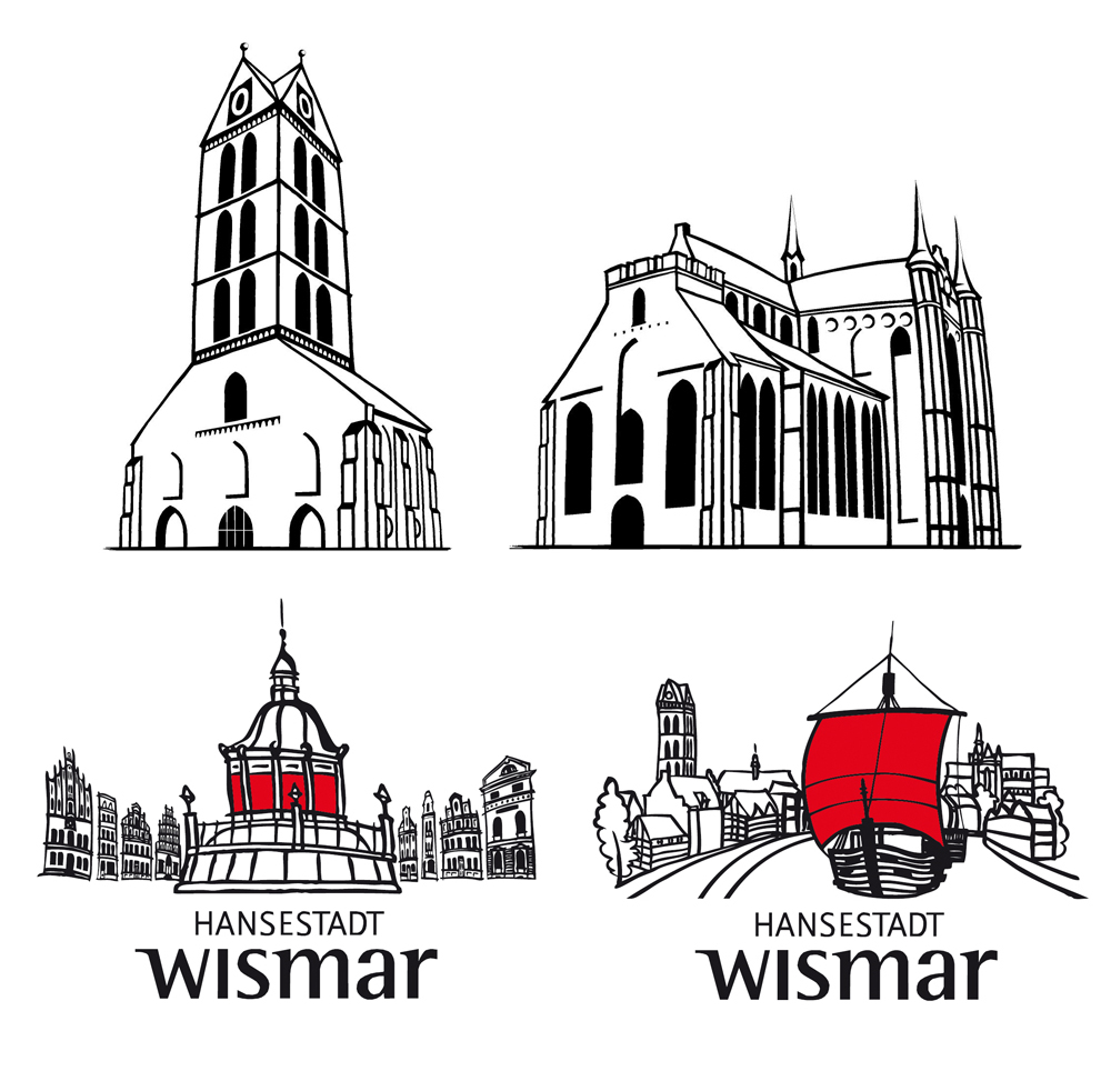 Werbezeichnungen für Wismar, Pinsel, Tusche, digital koloriert, 2017