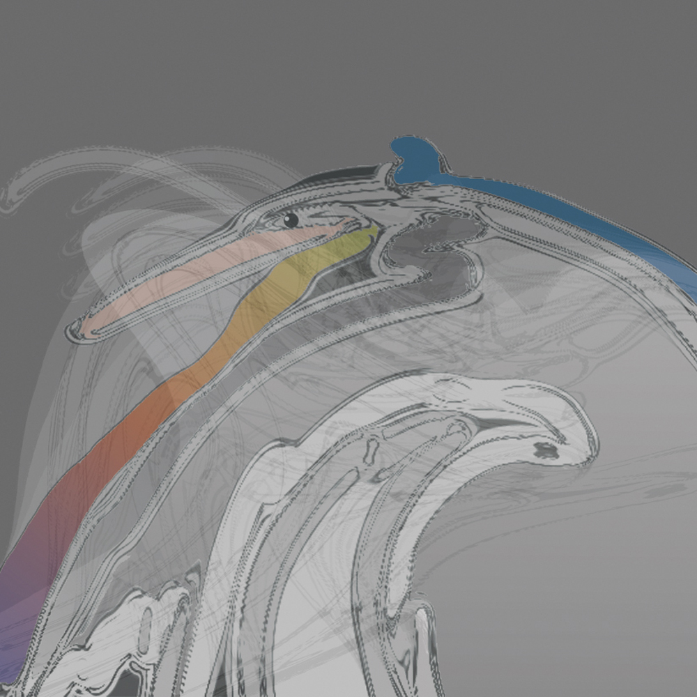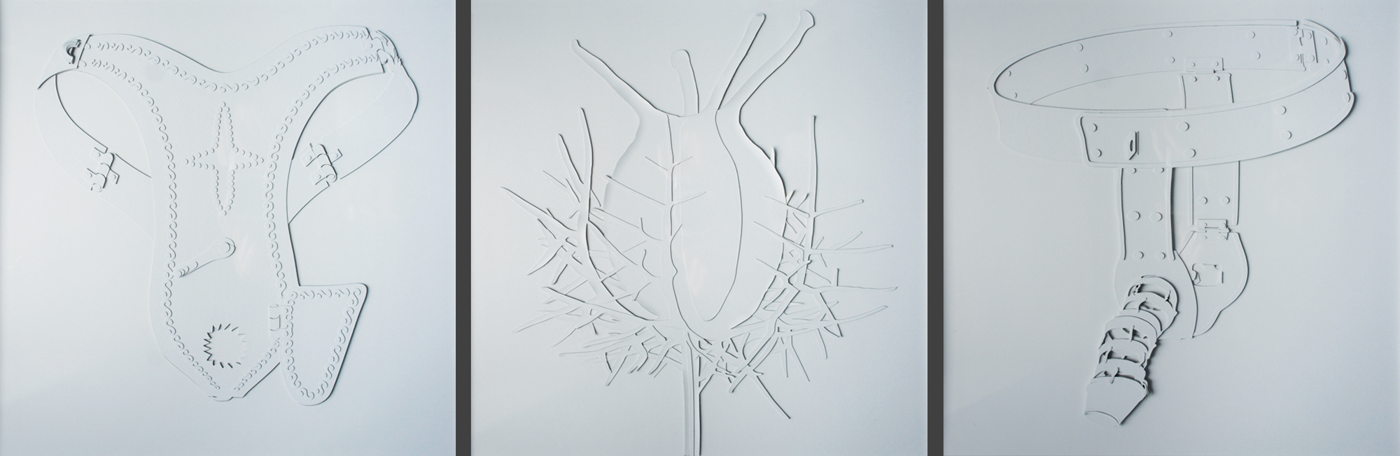 digitale, zeichnerische Umsetzung, übereinander geklebte PVC-Plotterschichten für plastischen Effekt,